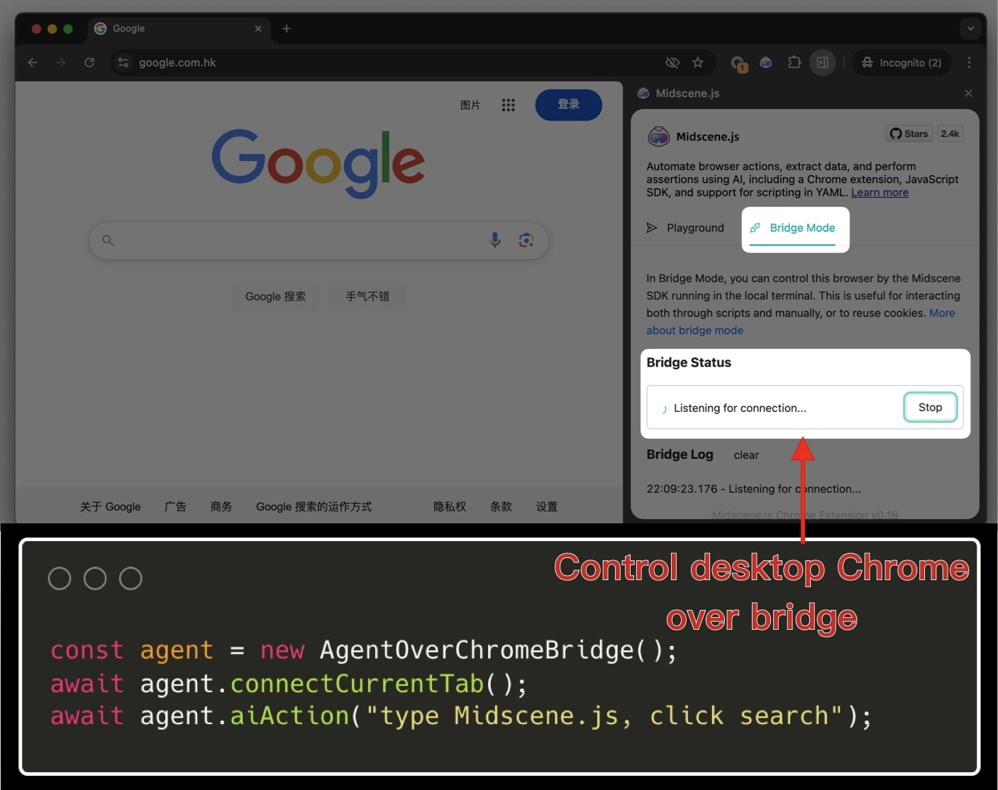 With the Midscene browser extension, you can now use scripts to link with the desktop browser for automated operations!